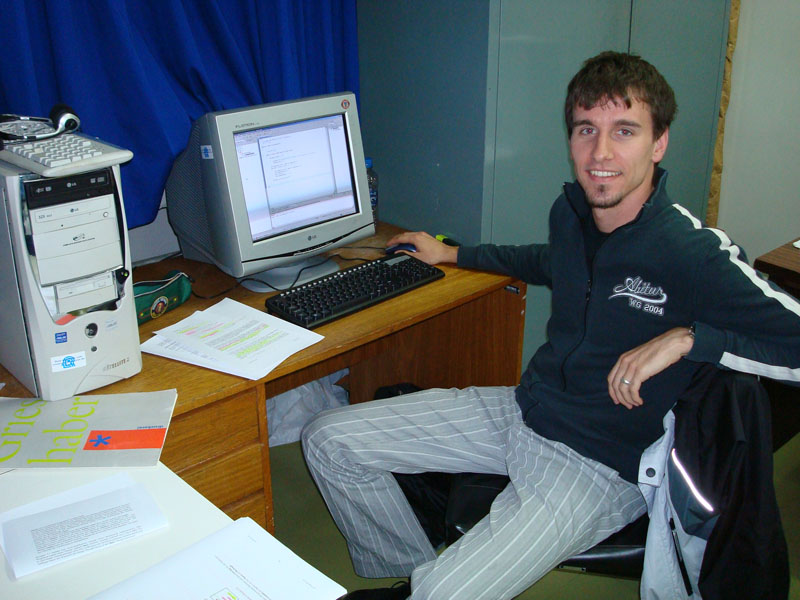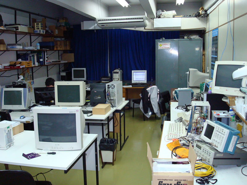 Wie man sehen kann sind in unserem Labor sehr viele Arbeitsplätze auf sehr wenig Raum. Prof. Humberto hat kein eigenes Büro. Er ist im gleichen Labor und hat genausoviel Platz wie ein Student. Dass hier alles so komprimiert ist macht aber überhaupt nichts. Die Arbeitsatmosphäre im Labor ist echt super und es zeigt auch dass man mit etwas einfacheren Mitteln sehr effektiv und gut arbeiten kann.