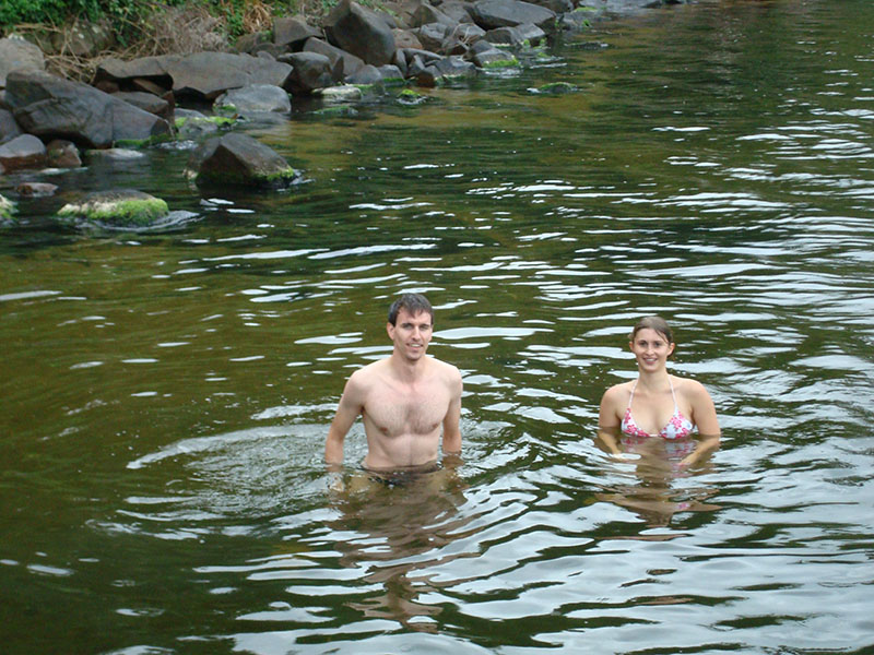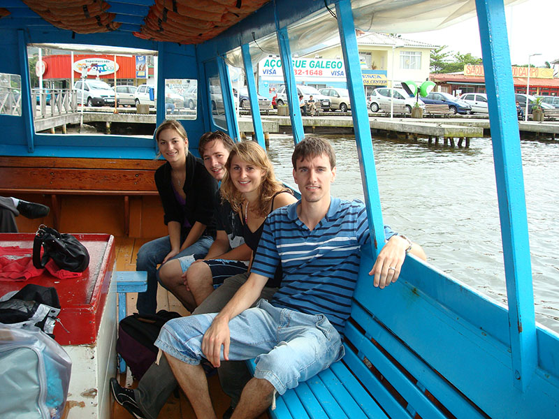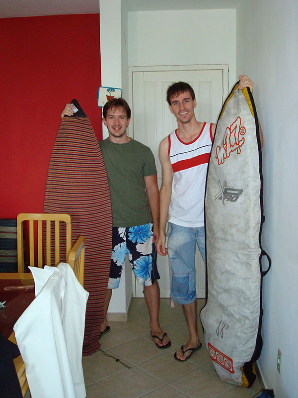 Als wir am Samstag ankamen hat es in stroemen geregnet! 🙁 Als wir am Abend dann weg gingen, war der Regen zum Glueck nicht mehr so stark. In der naehe der Lagoa de Conceição gibt es eine Strasse mit einer Kneipe neben der anderen und ueberall hat es Live-Musik. Echt spitze… Am Sonntagmorgen haben wir in der Jugendherberge zwei deutsche Maedels getroffen, die auch aus Curitiba kamen. Wir sind dann zusammen zur Lagoa de Conceição und von dort aus mit dem Boot zu einem kleinen einheimischen Restaurant an einer abgelegenen Kueste der Lagune. Dieser Ort ist nur mit dem Boot oder zu Fuss zu erreichen (2h 20min Fussweg!). Dort haben wir dann koestlichen Fisch und Calamares gegessen. Am Montag war dann super Wetter! Wir haben uns mit zwei Brasilianern getroffen (den einen hatten wir in Curitiba kennengelernt). Sie haben uns dann den Sueden der Insel gezeigt und uns zum Surfen (Wellenreiten) mitgenommen. Im Sueden gibt es echt traumhafte einsame Straende… Hinter dem Praia da Joaquina gibt es noch eine ganz schoen grosse Flaeche mit Sandduenen. Dort waren wir dann noch am Dienstag und haben bekanntschaft mit einer Schlange gemacht. War aber nicht gefaehrlich, wir hatten noch genug Abstand…